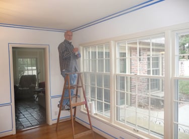 Walls below are a dusty tan color