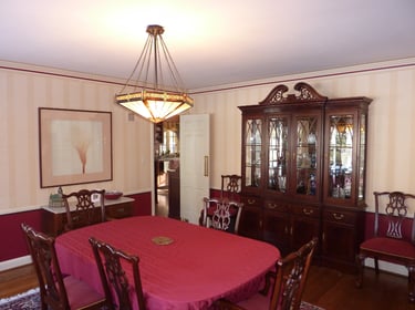 Proportions were low and wide. Touch of Distinction developed the scheme, colors and installed the vertical striped wall.